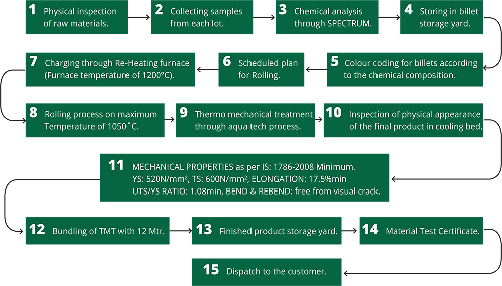 Bharathi is one of the very few TMT brands in South India with a quality checking laboratory accredited by NABL. Facility for online quality checking too is in place. In every stage of the manufacturing process, Bharathi TMT bars are rigorously tested for quality in this NABL accredited laboratory. Various factors such as the carbon content in billet samples, sulphur, manganese, nitrogen and so on are tested using BRUKER Q4 TASMAN 130, which is a high-end German-made optical emission spectrometer to ensure that they meet the BIS standards. Factors such as Yield stress, Tensile stress, Elongation, Bendability and Re-bendability of the manufactured TMT bars are tested in the laboratory at exact intervals. Apart from this, the quality control division promptly tests the proper addition and section weight of Fe 550D grade chemical objects mandated by BIS. The 550 D grade TMT bars from Bharathi are thus thoroughly tested for quality, ensuring unmatched strength and added ductility. Bharathi TMT steel bars come to the market only after attaining Test Certificates f or advanced quality. Customers can understand all about the details of these test certificates by scanning the QR code in the product tags that come with our Bharathi TMT steel bars.